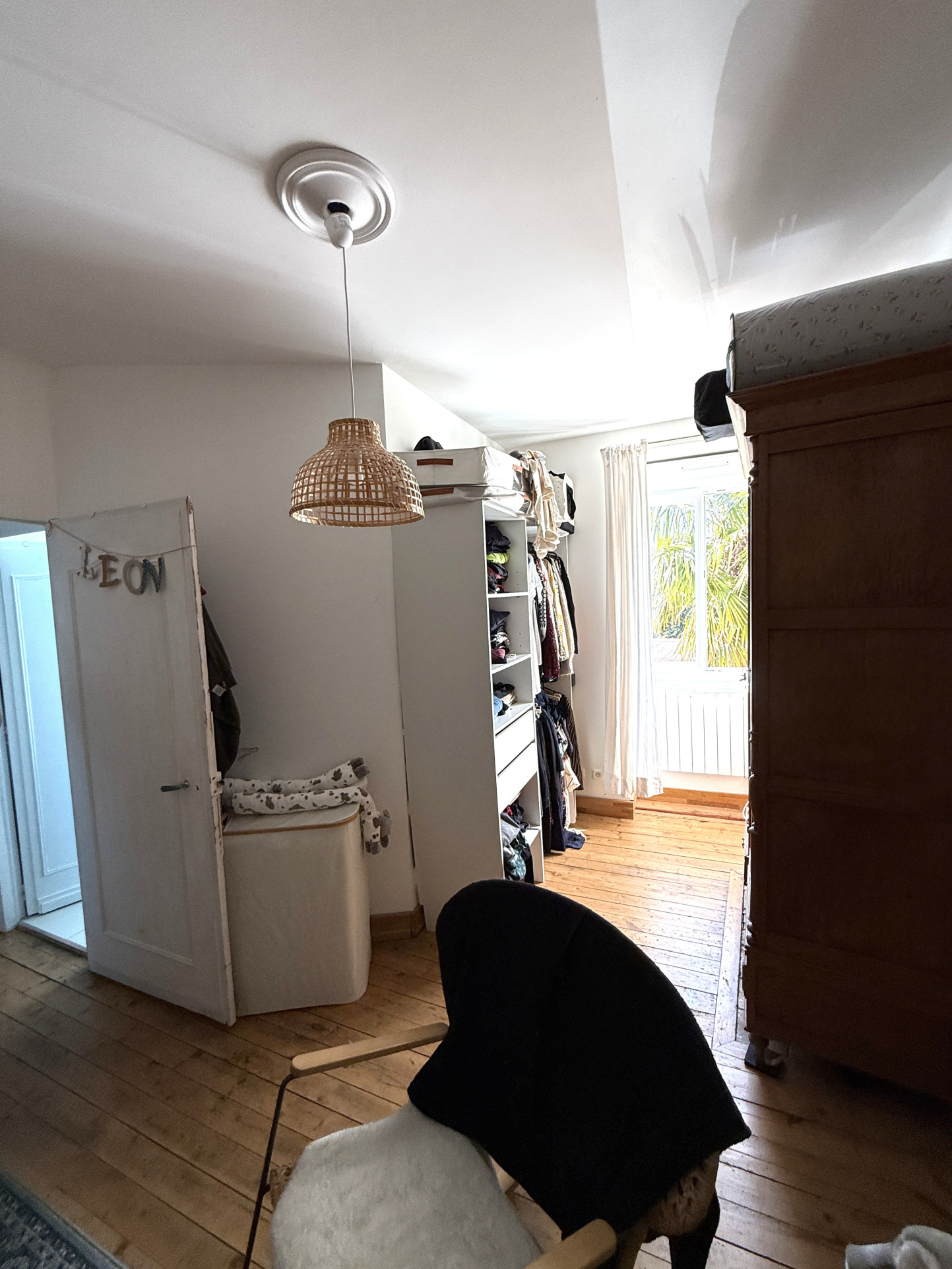 À l’étage, deux grandes chambres sur parquet avec dressing, ainsi qu’une salle de bains aménagée et des WC indépendants.