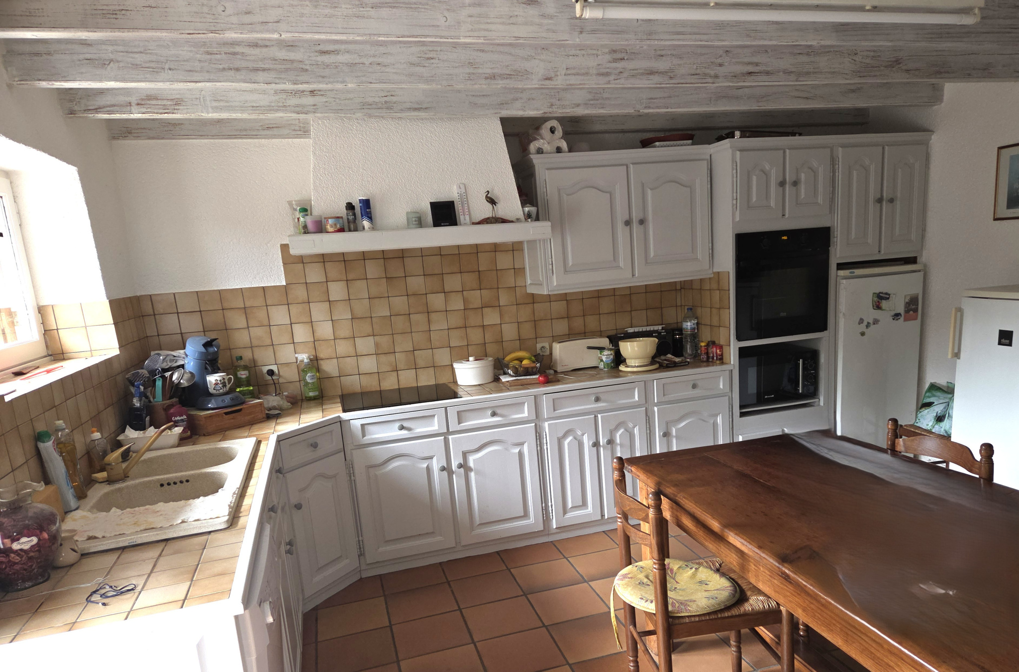 Comprenant une cuisine aménagée et équipée ouverte sur un spacieux salon avec cheminée-insert pour les soirs d'hiver et salle à manger, WC,